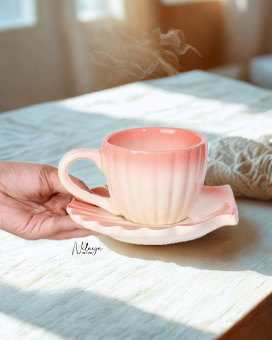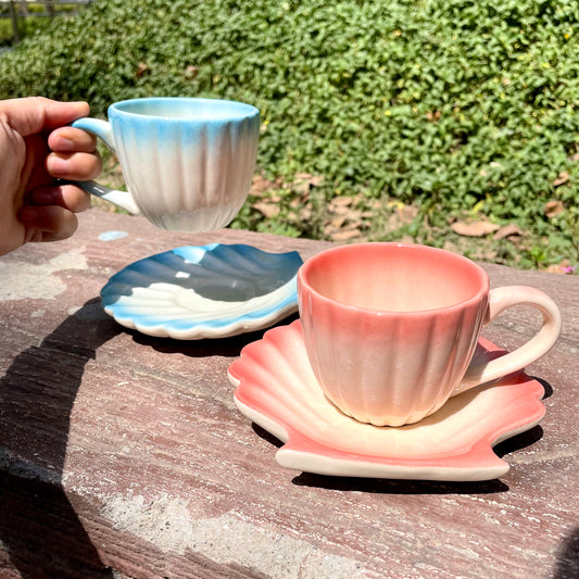 Ocean shell cup saucer set of 2 (Ombré Pink & Blue) - FLAT 33% OFF