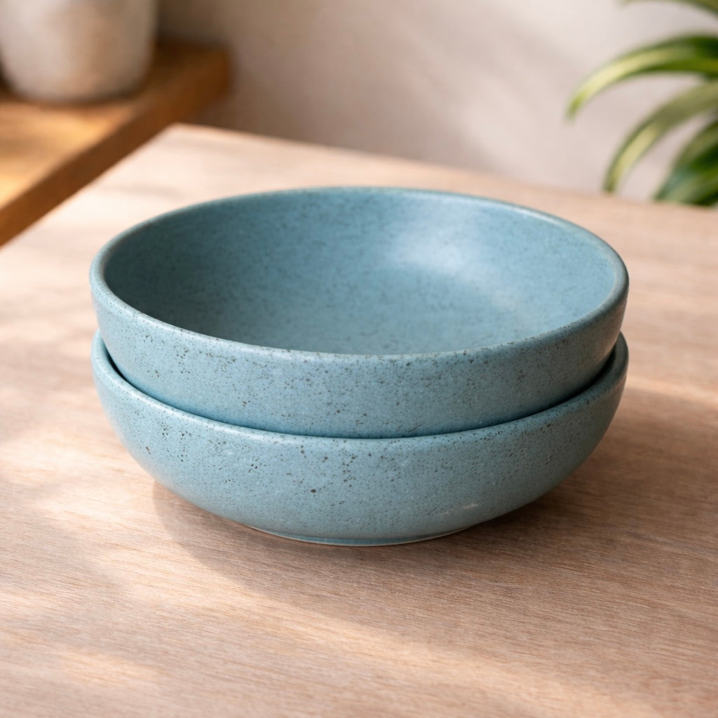 Super functional yet minimal bowl in beautiful speckled turquoise will win your hearts with its minimal chic style. Have your favourite meal, pasta or snacks in style and comfort of a bowl.
