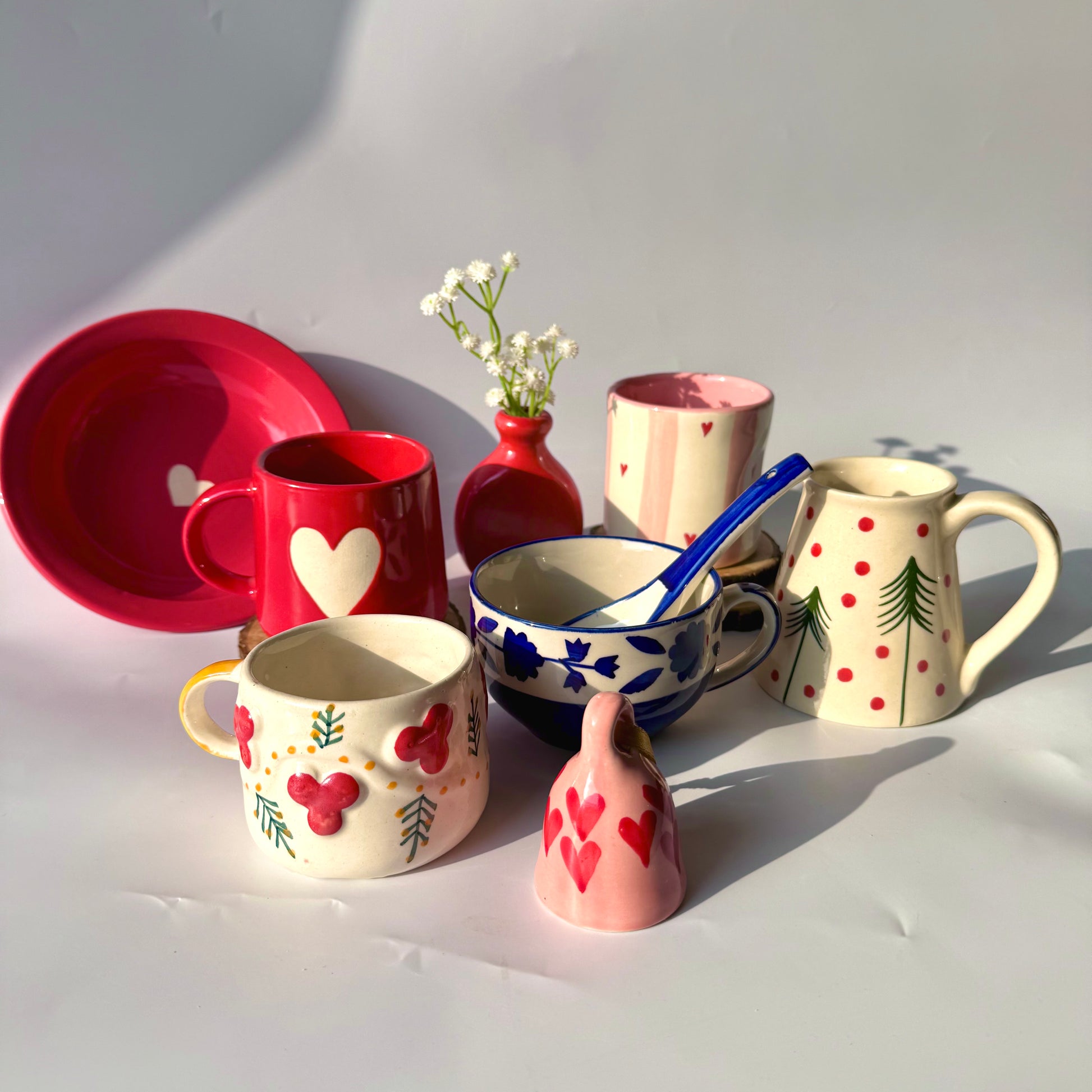 This 8-piece handcrafted ceramic bundle includes some of our cutest holiday-inspired pieces — created for slow mornings, cosy chai breaks, Christmas gifting, and those “just one more cookie” moments.
